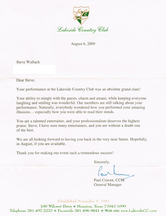 Testimonials for Country Clubs | Steve Wallach
